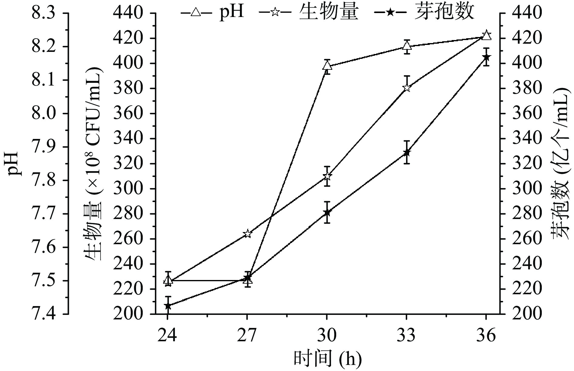 B. licheniformis were studied in a 30 L bioreactor, and the gene expression differences related to energy metabolism, oxidative stress effect, and amino acid transport at the log-phase were examined by qPCR. Results showed that: Citric acid supplement coupled with pH7.5 during 19.5~28 h was conducted, reaching a final content of 78 μmol/L in the medium. The feeding strategy prolonged the periods of cell growth and spore formation, and the peak cells (36 h) reached 4.2×10