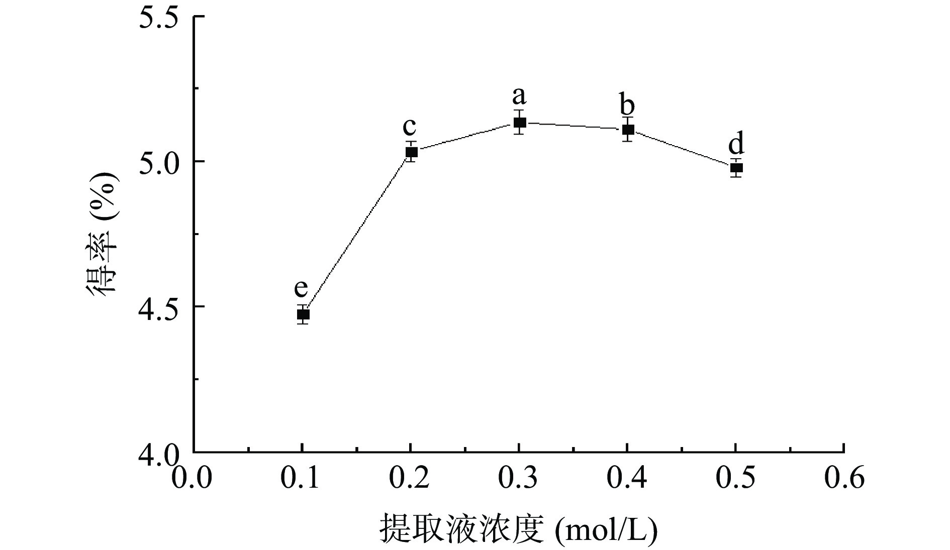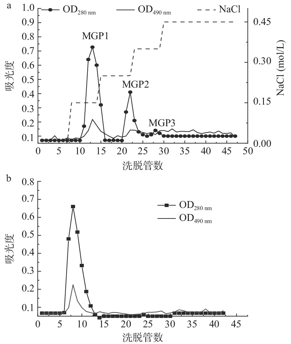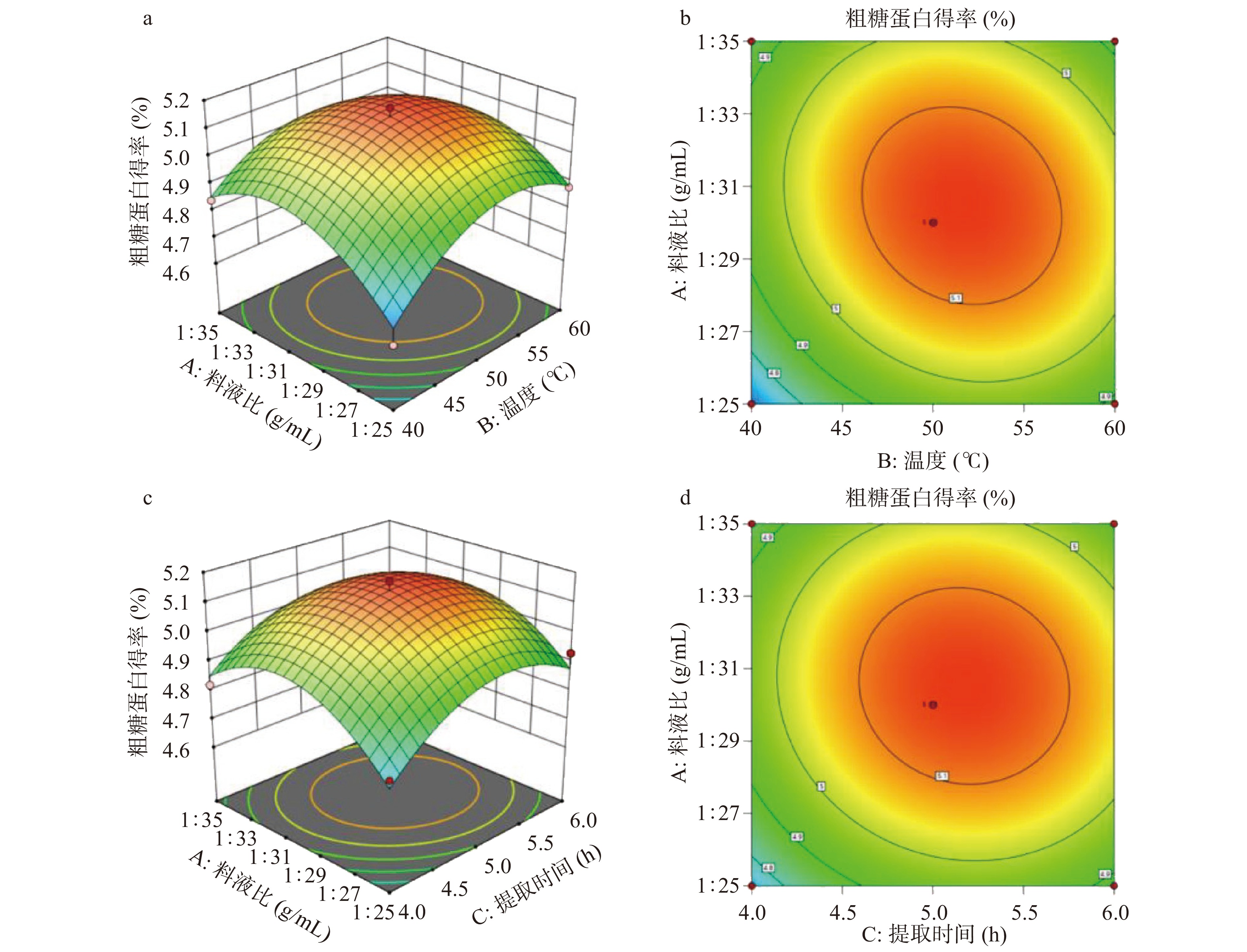 The extraction process of crude glycoprotein from Chinese giant salamander (MGP) mucus cultured in Lishui was optimized. The crude glycoprotein was further purified, of which characterization was analysed. Based on single factor experiment, the extraction process was optimized by response surface methodology with solid-liquid ratio, temperature, extraction concentration, extraction time as factors, and glycoprotein yield as index. The results showed that the optimal extraction conditions were solid-liquid ratio of 1:30.5 g/mL, extraction temperature of 51 ℃, extraction concentration of 0.32 mol/L, extraction time of 5.2 h, the highest yield of MGP was 5.22%±0.71%, which was basically consistent with the expected results. The electrophoresis pure of purified glycoprotein was determined. The lyophilized MGP was white, loose powder, of which molecular weight was about 29 kDa. The contents of essential amino acids and medicinal amino acids in MGP were 37.21 g/100 g and 33.39 g/100 g, respectively. MGP had a typical glycoprotein structure of UV full wavelength absorption image, containing o-glycopeptide bond, pyranose ring structure and