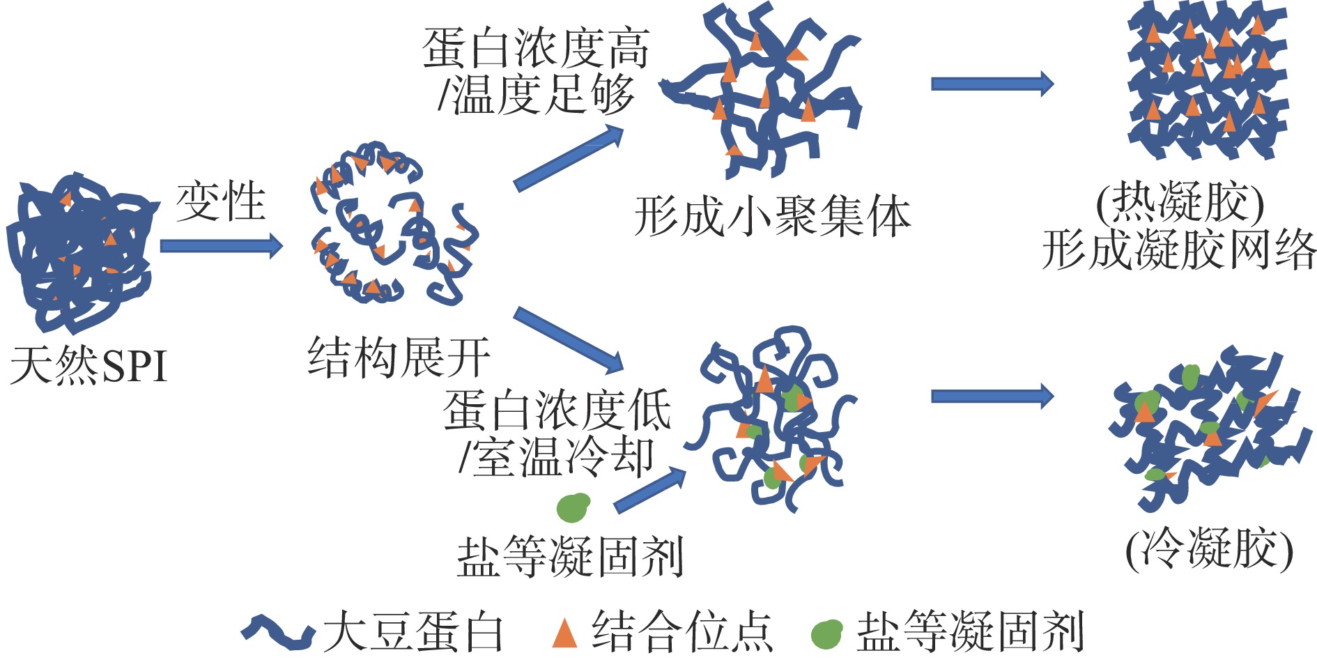 As one of the important food crops in China, soybean has a high nutritional value. Gelation is of great interest as an important functional property of soybean isolate proteins. Soy protein is mostly used as an encapsulation carrier for a variety of complexes such as water molecules, sugars, lipids and unstable small molecule active substances in products, but the natural gel products of soy protein have problems such as loose structure and low yield, which greatly limits the application and development of its gel products. In this paper, the mechanism of gel formation from soy protein isolates is analyzed, and the intrinsic influencing factors such as soy protein conformation and composition, polysaccharide and lipid interactions and ionic strength, as well as the influence of external factors such as physical, chemical and biological factors on gel formation are discussed in depth and systematically analysed, with a view to providing a theoretical basis for the processing and utilization of soy protein gel products in the future.