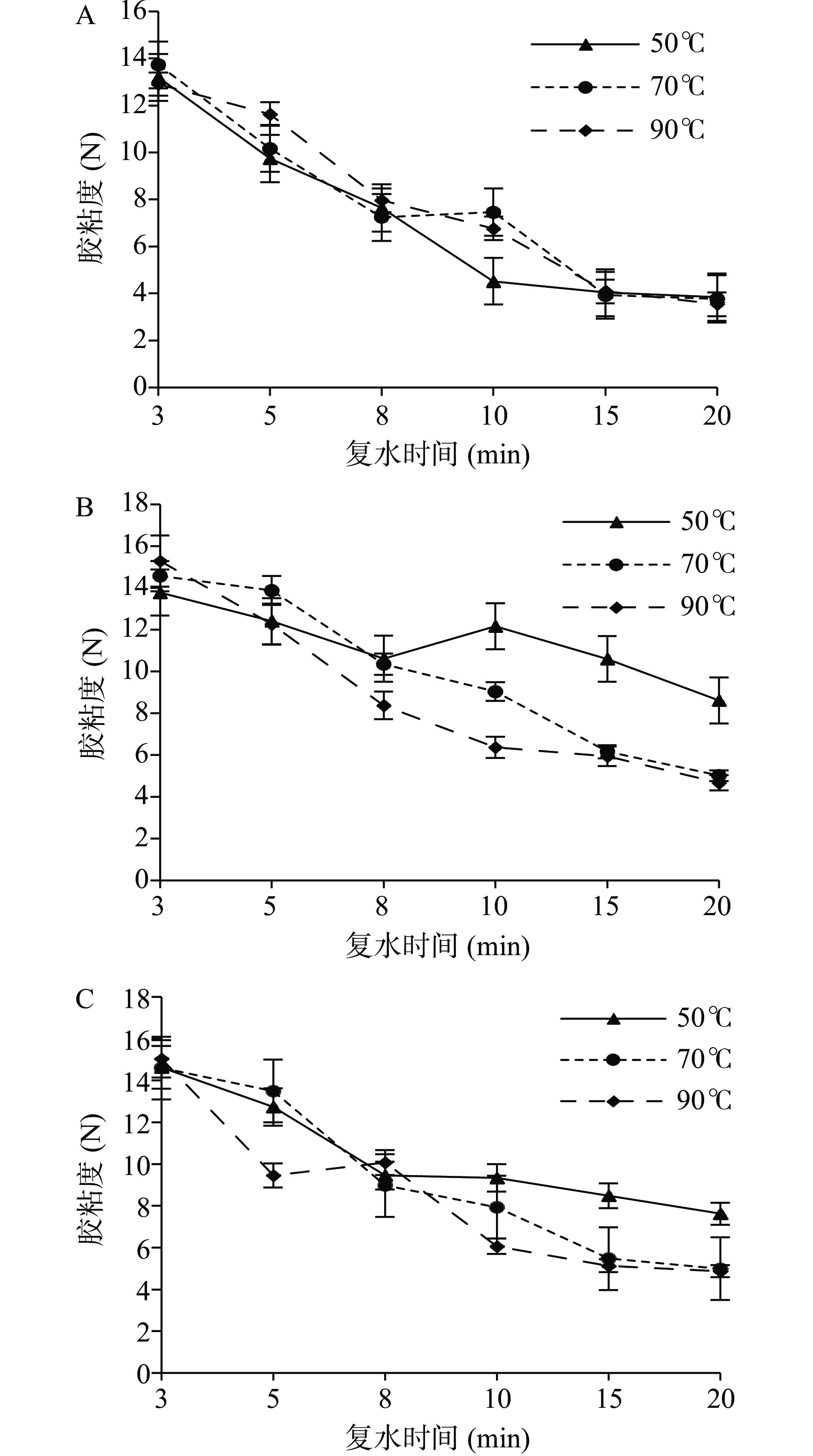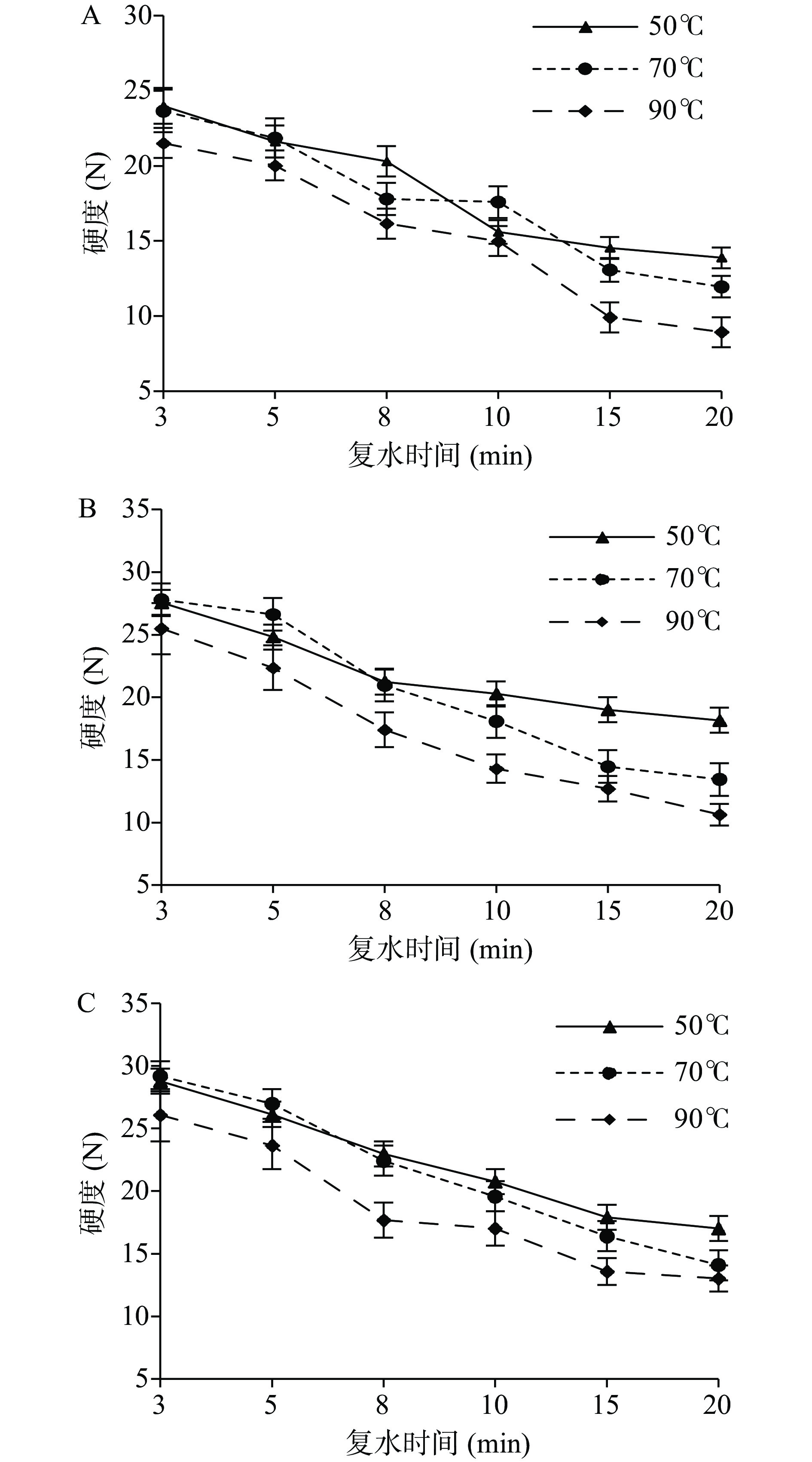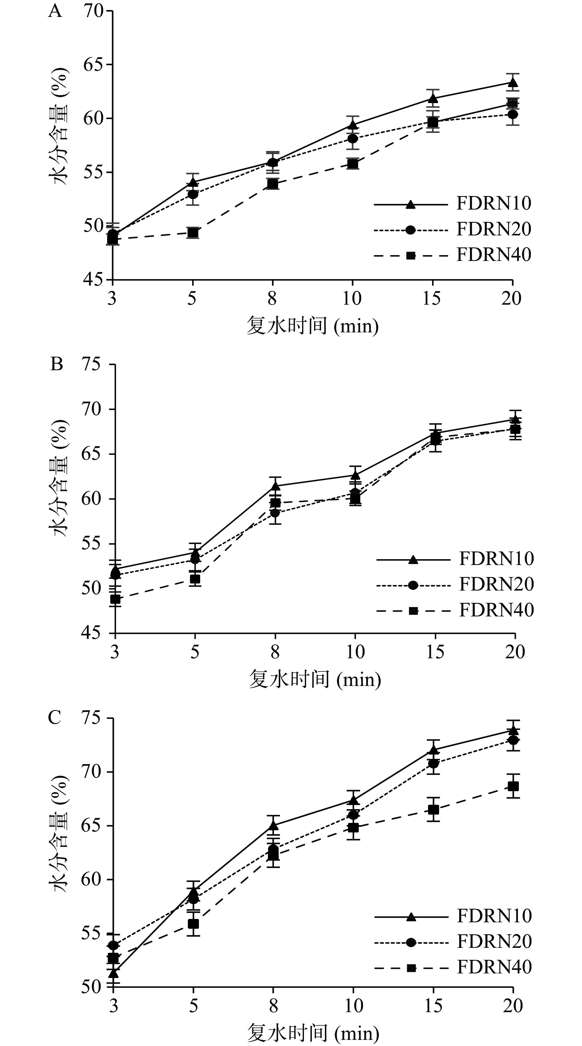 Dried instant rice noodles are a convenience food, and they have shown rapid development in recent years. However, there are many disadvantages of dried instant rice noodles, such as long rehydration time, high turbidity of soup, high break rate, poor taste, and disappointing textural properties. In this study, to overcome these disadvantages, freeze-dried rice noodles were prepared at freezing temperatures of −10, −20, and −40 ℃ by the vacuum freeze-drying process, which were called FDRN10, FDRN20, and FDRN40, respectively. The factors that affected the rehydration quality of freeze-dried rice noodles were investigated by analyzing the rehydration speed, microstructure, starch retrogradation, and texture characteristics at different water temperatures. The results showed that FDRN10 had the highest water content of the three freeze-dried rice noodles for the same water temperature and rehydration time. This indicated that the rehydration speed of FDRN10 was the fastest. The microstructures of the external surface and cross section were observed. FDRN10 had the loosest structure and largest aperture. The diameter of the aperture of FDRN10 was 72.58 µm, which was four times larger than that of FDRN40. This microstructure led to FDRN10 showing good water absorption. Differential scanning calorimetry showed that the enthalpy of FDRN10 was 92.98 J/g. The enthalpy of FDRN40 was the lowest (12.39 J/g). Thus, FDRN10 had the highest level of starch retrogradation among the three freeze-dried rice noodle samples, and the lowest level of starch water-absorbing swelling. Hardness analysis showed that the hardness value of FDRN10 decreased with increasing water temperature for the same rehydration time. The texture characteristics of FDRN10 were the closest to those of fresh rice noodles after rehydrating with water at 70 ℃ for 8 min. The above results indicate that the freezing temperature and rehydration temperature play important roles in the quality of freeze-dried rice noodles. This study provides an innovative process for improvement of instant-rice-noodle production.