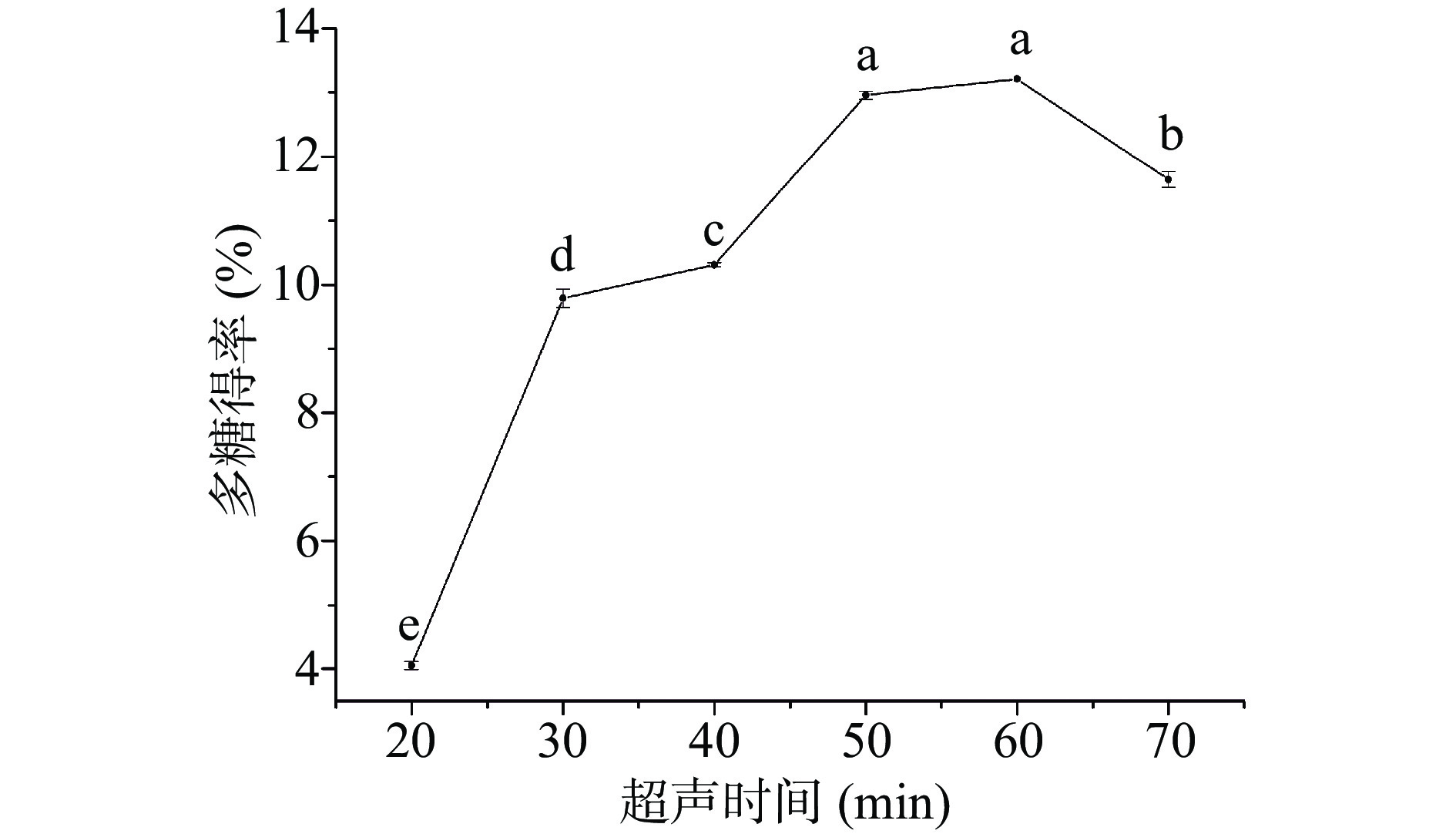Stropharia rugosoannulata in Bo'ai County and the antibacterial and antioxidant activities were analyzed. On the basis of single factor experiments, with the polysaccharide yield as response value, the ultrasonic-assisted extraction process of polysaccharides from