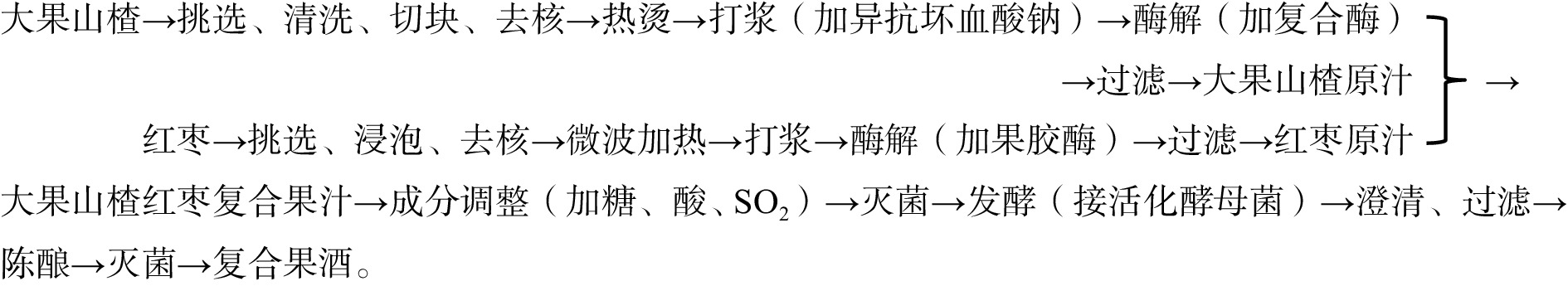 Ziziphus jujube Mill., both refreshing and pleasant. The alcohol content of compound fruit wine was 11.50%vol±0.10%vol, the soluble solid content was 7.80%±0.08%, the sugar content was 3.40±0.13 g/L, the acid content was 7.13±0.03 g/L, the extraction content was 22.40±0.15 g/L, the SO