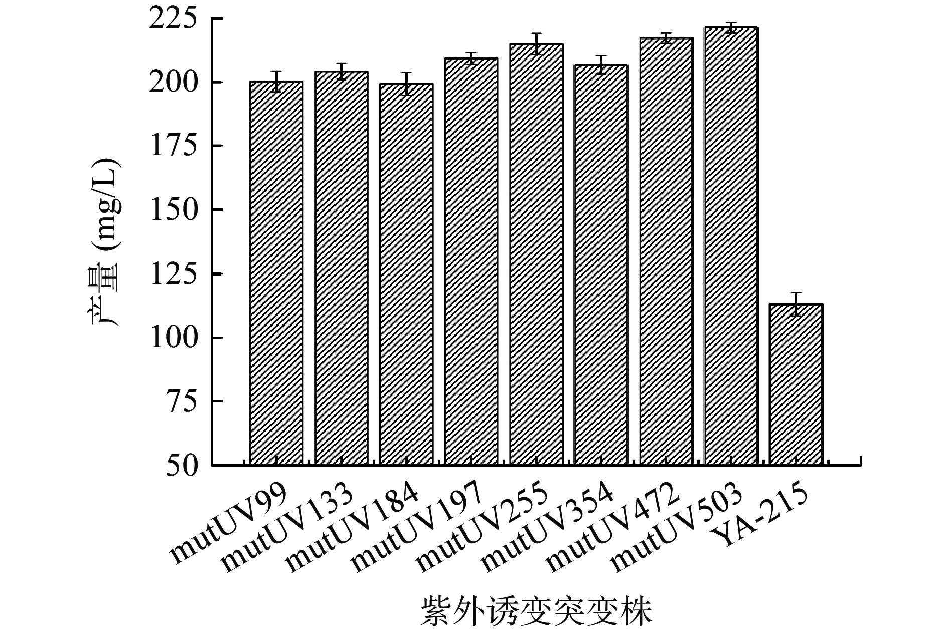 Bacillus YA-215 was used as the starting strain in this study to obtain high-yield Fengycin mutants through compound mutagenesis (UV mutagenesis, ARTP-LiCl mutagenesis) breeding. The optimum fermentation conditions were determined by single-factor experiment and response surface methodology. The results showed that a high-yielding Fengycin mutant strain UA397 was obtained through compound mutagenesis, and the whole genome sequencing combined with 16S evolution sample analysis showed that it was