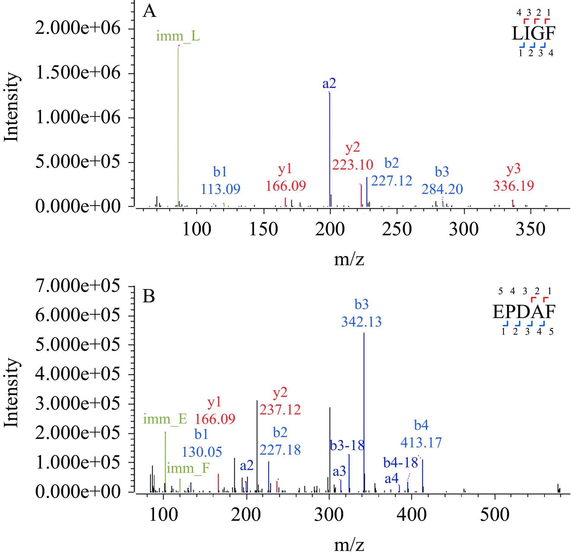 α-glucosidase inhibitory rate was 57.29%. From this, 624 peptide segments were identified, and LIGF was selected for its
