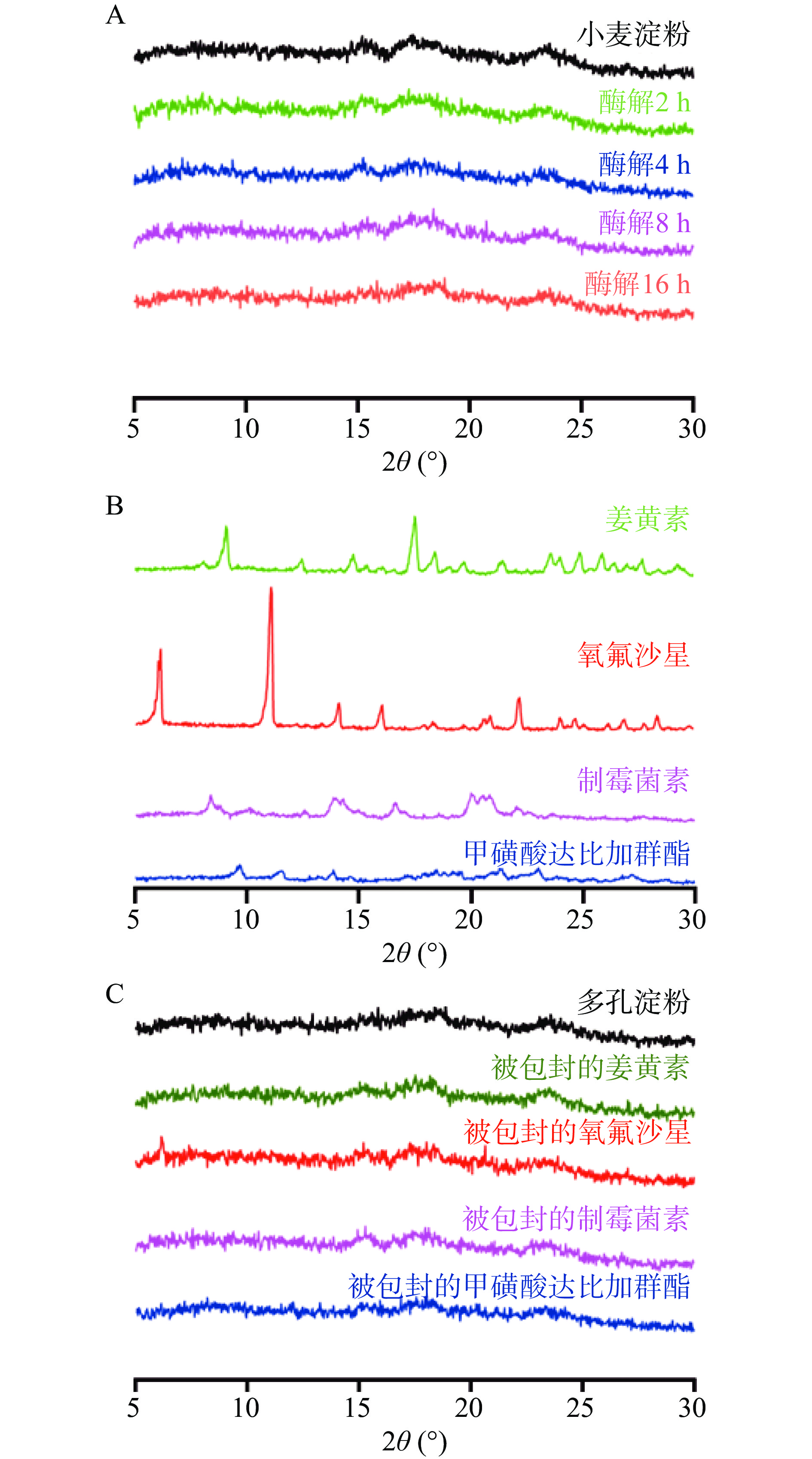 In vitro experiments showed that the release rate of curcumin loaded onto wheat porous starch was significantly reduced. The release rate in stomach for 2.5 h was approximately 30%, and it was approximately 40% in intestine for 5 h. The research results provided a basis for the preparation and application of wheat porous starch.