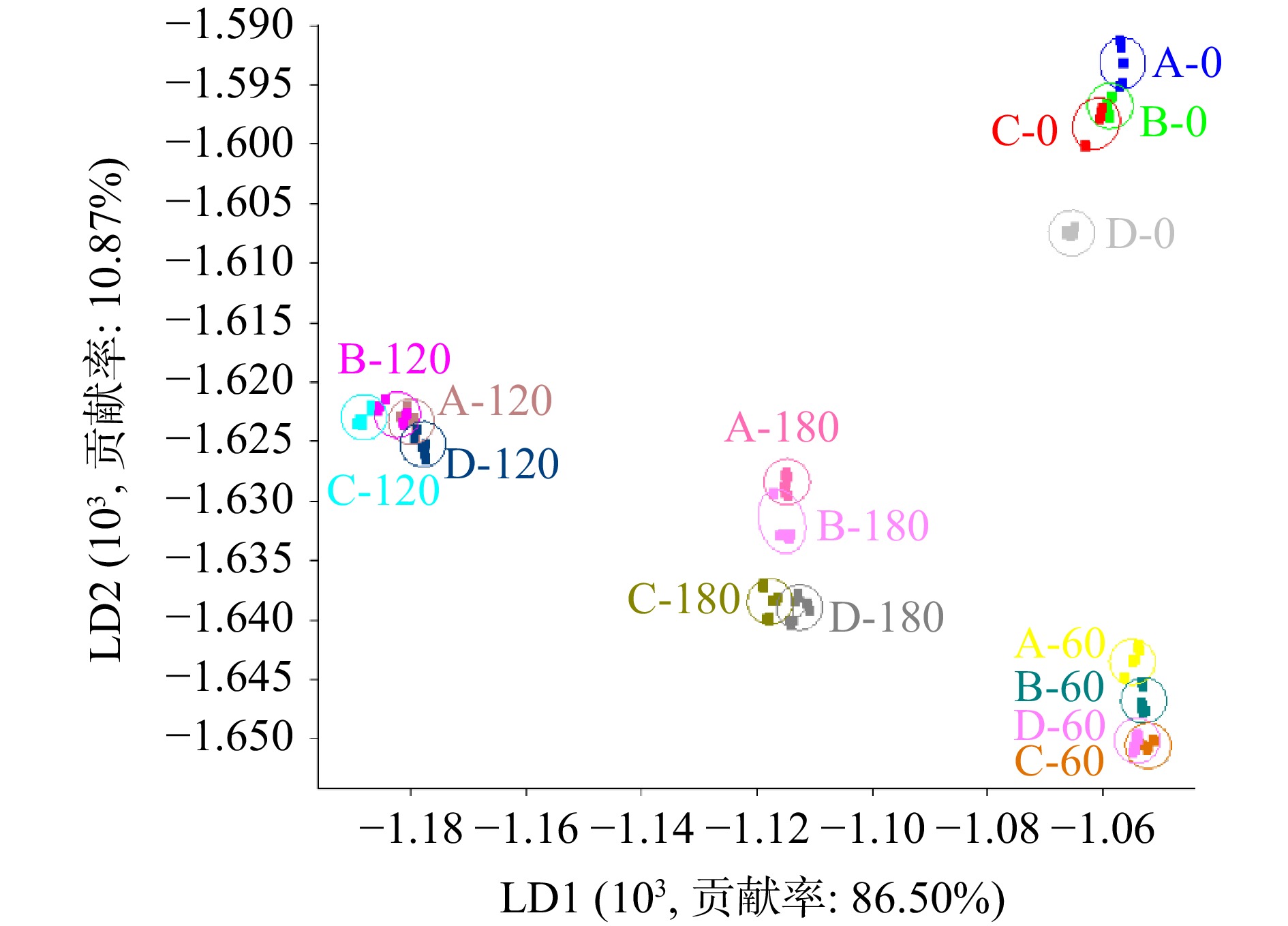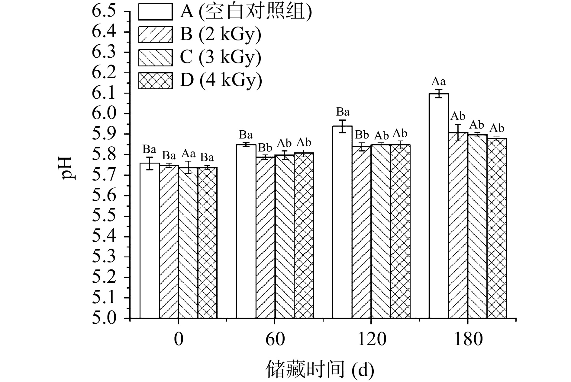 P<0.05). During the storage stage, the total bacterial colony values of the irradiated group increased slowly and were always lower than those of the control group, and the content of unpleasant substances such as dimethyl disulfide increased, and the flavor differences with the control group increased, resulting in a decrease in aroma scores. The experimental results of gas chromatography-mass spectrometry (GC-MS) and electronic nose showed that the irradiated off-flavors decreased with the increase of storage time, the content of major flavor substances increased, and the flavor differences with the control group decreased. Overall, 2, 3 kGy-treated bacon samples had lower fat oxidation and the flavor difference between irradiated and control was smaller and the off-flavor was relatively weak. The moisture content was higher and the flavor was better after storage. However, in terms of bactericidal effect and texture, the 3 kGy group was slightly better than the 2 kGy group, with stronger bactericidal effect and slightly higher tissue structure score. Therefore the optimal irradiation was determined to be 3 kGy in this study.