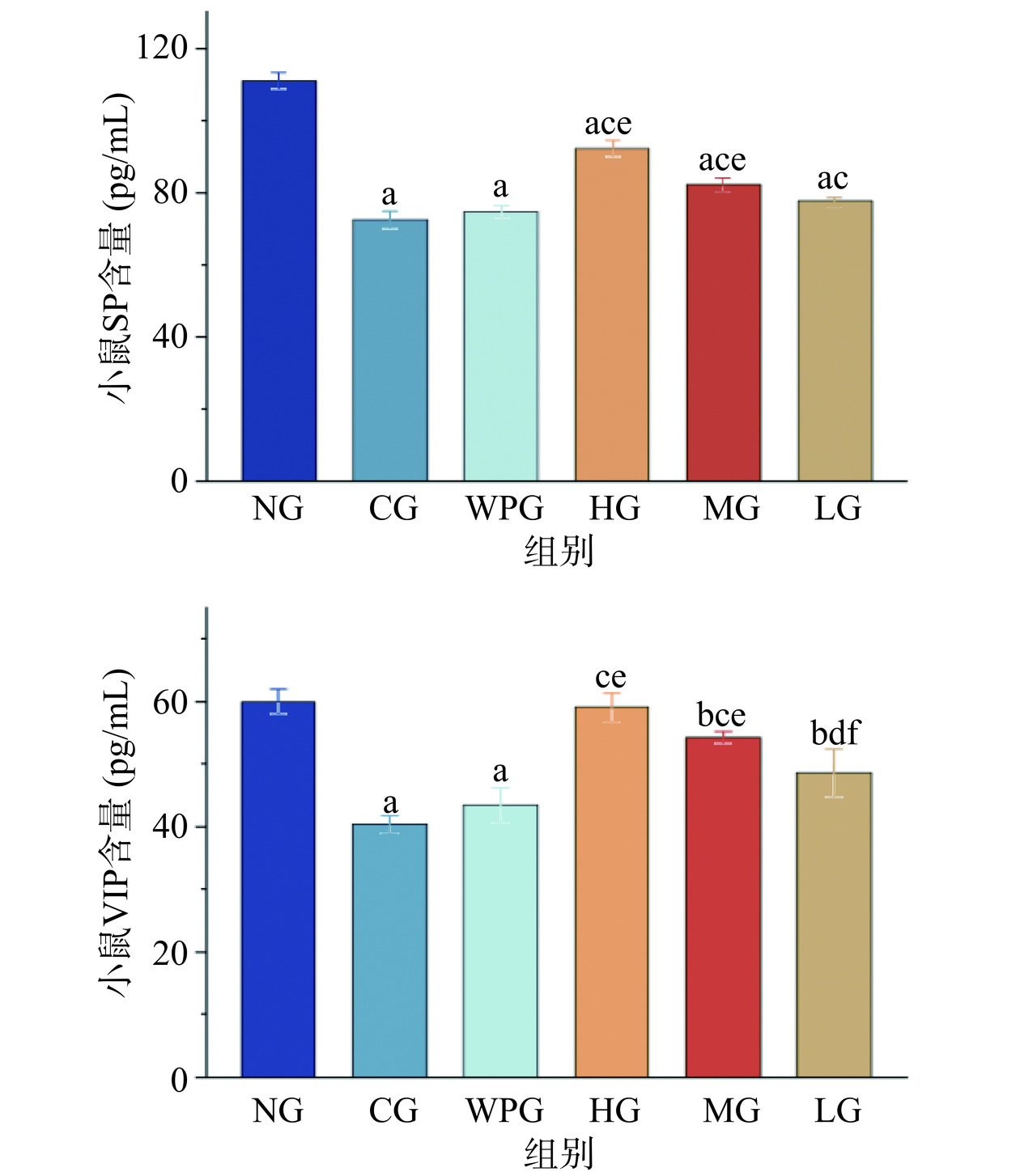 P<0.01), while the low dose group of GPs increased the levels of brain intestinal peptide indicators SP and VIP in constipated mice (