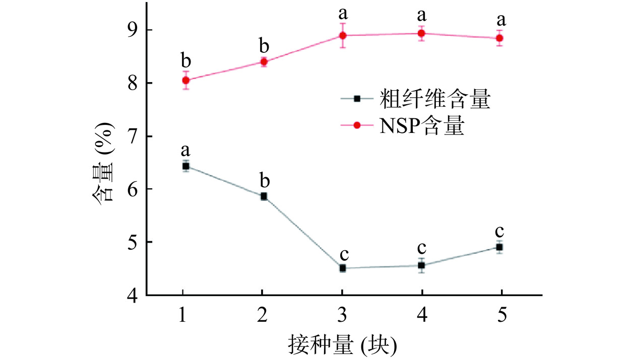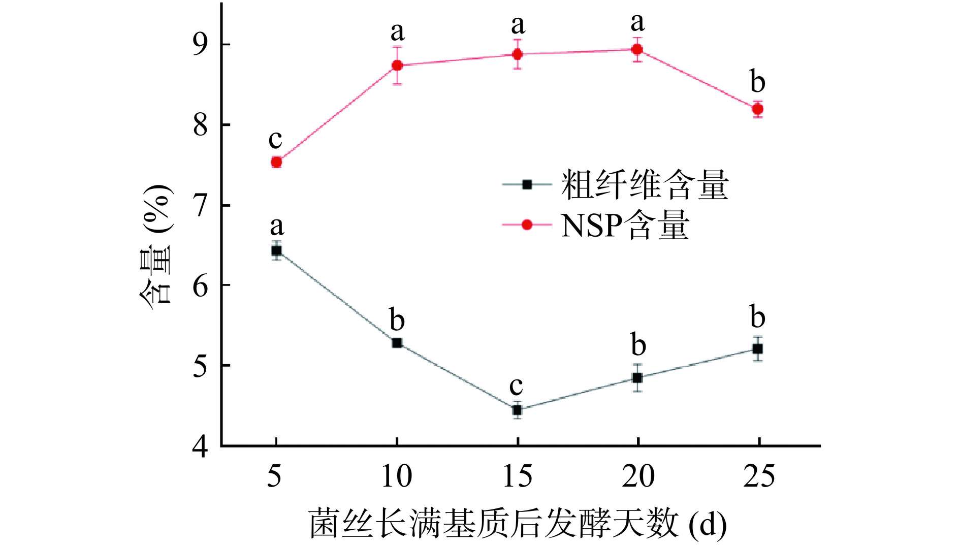 • 摘要: 以小麦粒为原料,羊肚菌为发酵菌株,采用固态发酵工艺制备小麦羊肚菌菌粮(fungus fermented wheat,FFW)。以粗纤维含量和非淀粉多糖(NSP)含量为评价指标,料液比、基质起始pH、接种量、发酵天数为考察因素,利用正交试验优化小麦羊肚菌菌粮制备工艺,并分析菌粮的营养成分、理化性质和抗氧化活性。结果表明最佳发酵工艺为:料液比为1:0.9(g:mL)、基质起始pH为7.0、接种量为5块(直径0.8 cm的菌丝块)、发酵天数为10 d,该条件下制备的小麦羊肚菌菌粮粗纤维含量为4.09%,NSP含量为9.31%。与发酵前相比,小麦羊肚菌菌粮表面出现孔洞,沟壑增多,褶皱加深,菌粮的蛋白质含量提高了78.79%,碳水化合物含量降低了17.79%;可溶性膳食纤维SDF增加了43.70%、不可溶性膳食纤维 IDF降低了19.24%、总膳食纤维TDF在发酵前后变化不明显。发酵后菌粮的持水性、吸附不饱和脂肪酸能力、吸附饱和脂肪酸能力和溶胀性分别增加了77.84%,11.49%、25.00%、26.00%;在模拟人体胃和小肠的环境下对胆固醇吸附率分别提高了86.29%、290.14%。发酵后菌粮的总抗氧化活性、DPPH自由基清除率、超氧阴离子自由基清除率和羟自由基清除率分别提高了41.29%、14.54%、490.68%、10.80%。该工艺制备的小麦羊肚菌菌粮可显著提升小麦的营养价值、理化性质和抗氧化活性,本研究为开发小麦羊肚菌菌粮新产品提供理论依据。