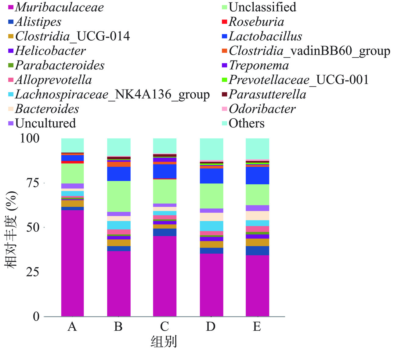 P<0.05). The experimental results of the microbial community sequencing test showed that: compared with the blank group, the abundance of probiotics in the three strain groups T1-5, T1-9, and 5B-1 Lactobacillaceae and Rikenellaceae was significantly increased, including Prevotellaceae in the 5B-1 group. So, the conclusion are as follows: strains T1-5, T1-9 and 5B-1 can promote intestinal peristalsis, regulate the structure of intestinal microbiota, and alleviate constipation in mice.